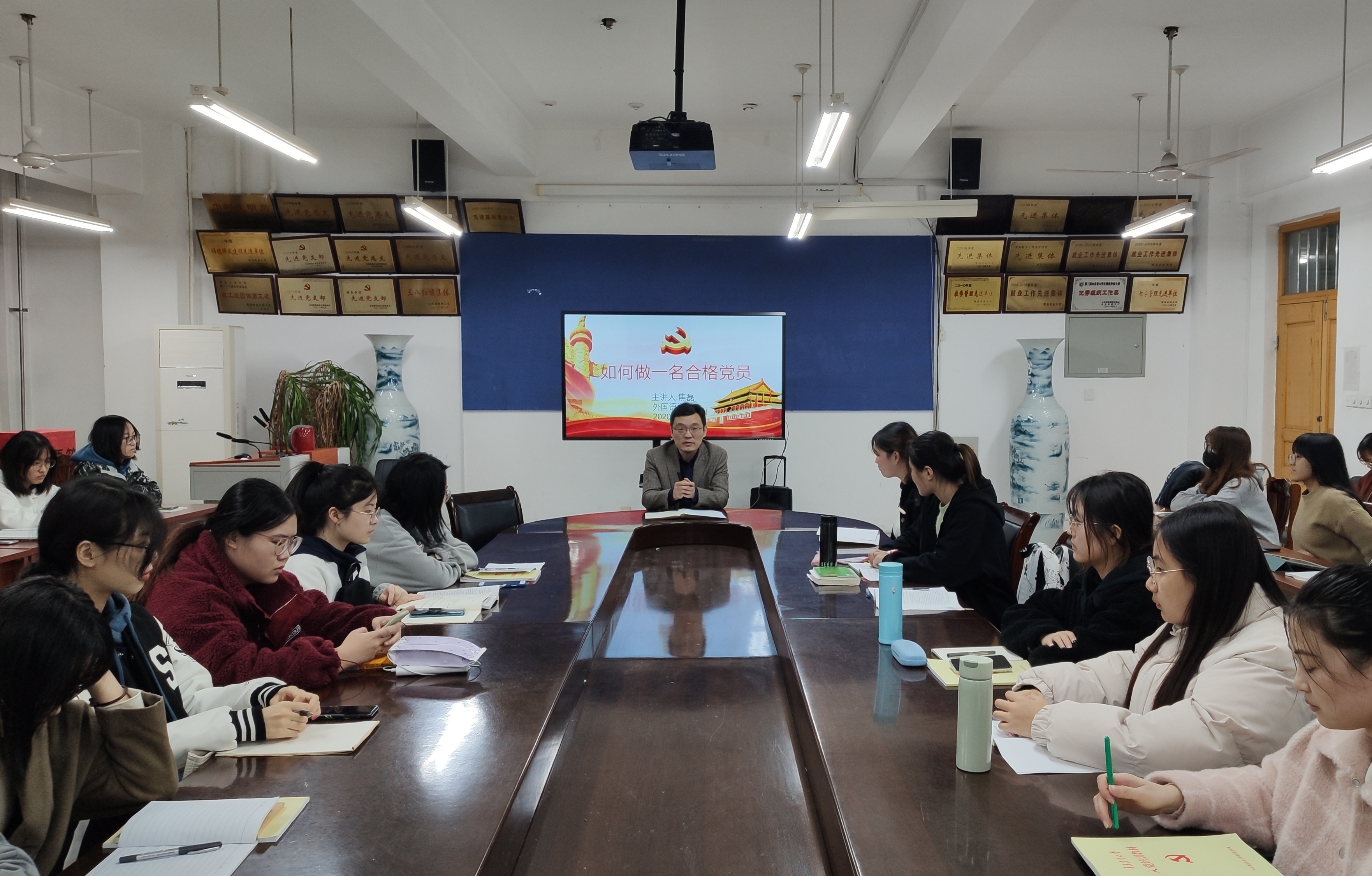 11月19日,青岛农业大学外国语学院党委书记焦磊于文经楼会议室为第二十七期党员发展对象、入党积极分子上“如何做一名合格党员”的专题党课。