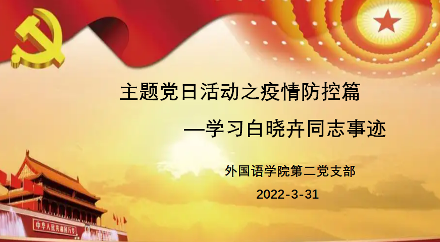 3月31日下午,外国语学院第二党支部采用线上视频会议的方式,开展了“疫情防控篇——学习白晓卉同志事迹”主题党日活动。党支部书记鲁华山同志主持,全体党支部成员参加。