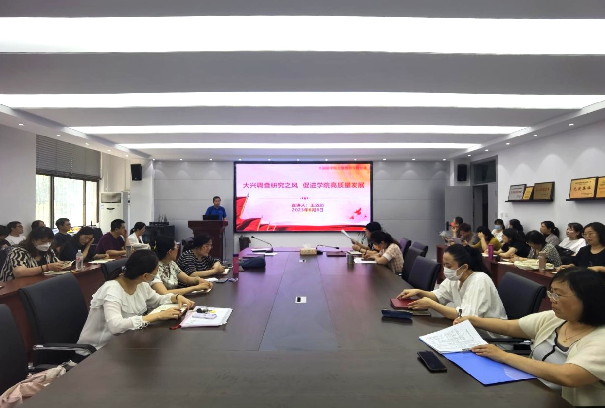 王效仿结合习近平总书记关于调查研究工作的重要论述,强调要把调查研究工作和外国语学院的实际工作、重点工作相结合,更好地推动学院事业高质量发展。同时提出五点要求。一是主动配合上级有关部门开展的调查研究工作,如实汇报基层情况,为上级决策提供第一手真实资料。二是学院及系部领导要认真落实关于大兴调查研究之风的要求,切实掌握了解师生在学院办学治院过程中的急难愁盼问题,营造有利于学院高质量发展的浓厚氛围。三是专任教师要切实加强对学生专业知识需求及专业成长规律的调查研究,改进教学方式方法,增强教学管理工作的针对性及有效性。四是学生管理人员及班主任老师要加强对于学生综合素质提升及成长成才需求的调查研究,加强家校沟通与家校合作,为学生提供安全、健康的学习生活环境。五是所有教职工都要牢记调查研究是谋事之基、成事之道的要求,根据自己的工作性质及学业专长加强业务工作的调查研究,为学院高质量发展做贡献。