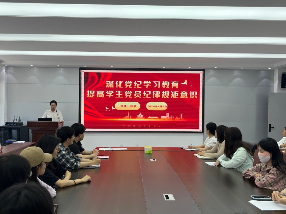 线郁首先介绍了2024年党纪学习教育相关要求,强调了学习贯彻《中国共产党纪律处分条例》的重要性,并带领学生干部学习解读《中国共产党纪律处分条例》。随后,线郁结合实际提高党员队伍的遵规守纪水平提出了三条总结性建议。一是要提高学习党规党纪的思想自觉;二是要准确把握各项纪律要求,自觉在工作生活中发挥模范带头作用;三是要认真接受党组织的培养、教育和考察。