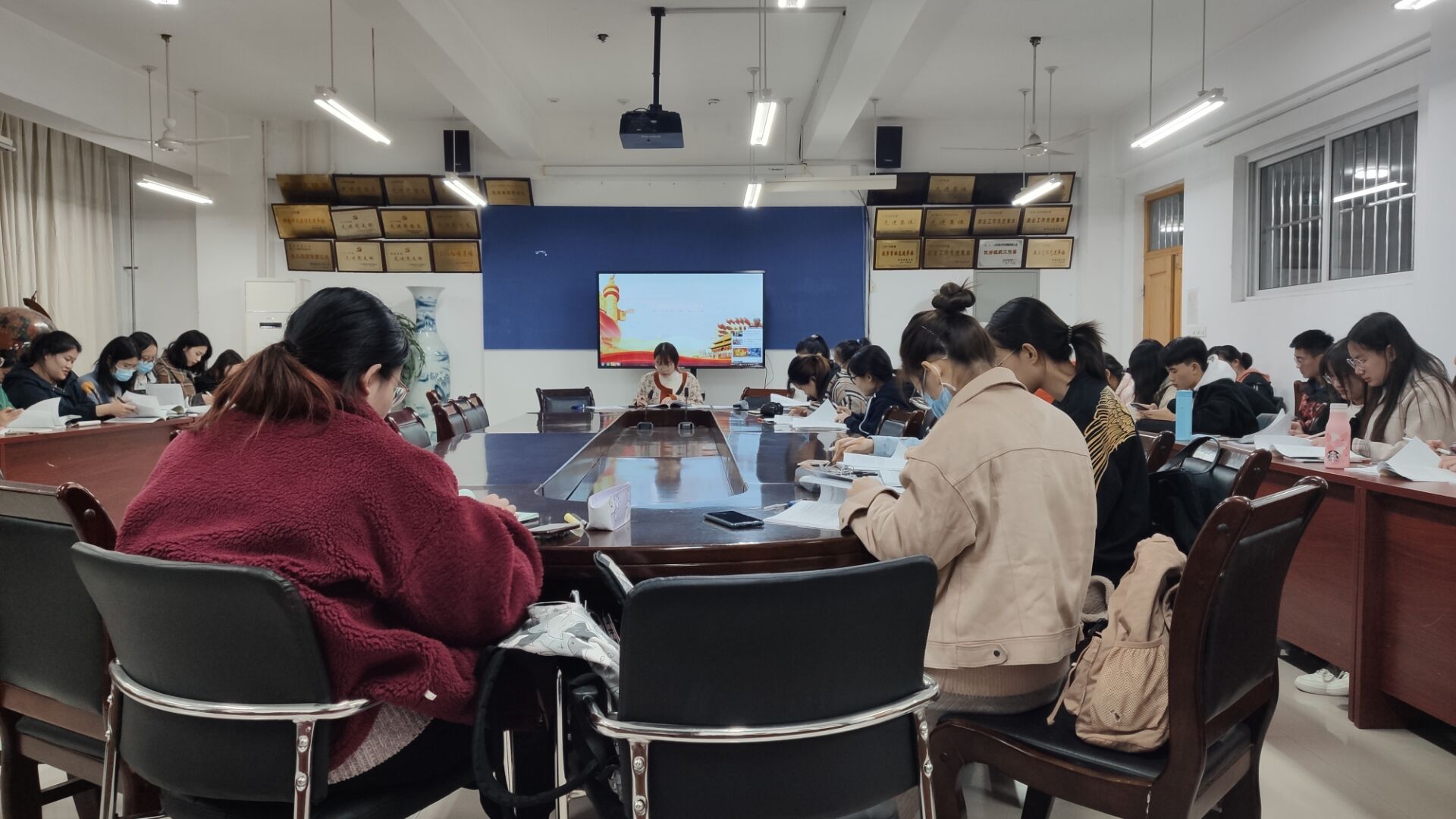 为弘扬共产主义青年团优秀团员精神风貌,学习优秀共青团员精神,10月12日,青岛农业大学外国语学院组织2019级、2020级各班团员代表于文经楼会议室开展团课学习活动。