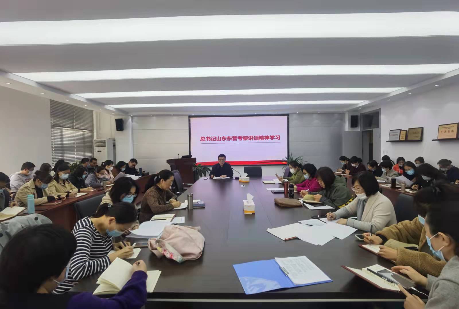 11月4日下午,青岛农业大学外国语学院于文经楼会议室召开全院教职工理论学习会议。本次大会由外国语学院党委书记焦磊主持,全体教职工参会。