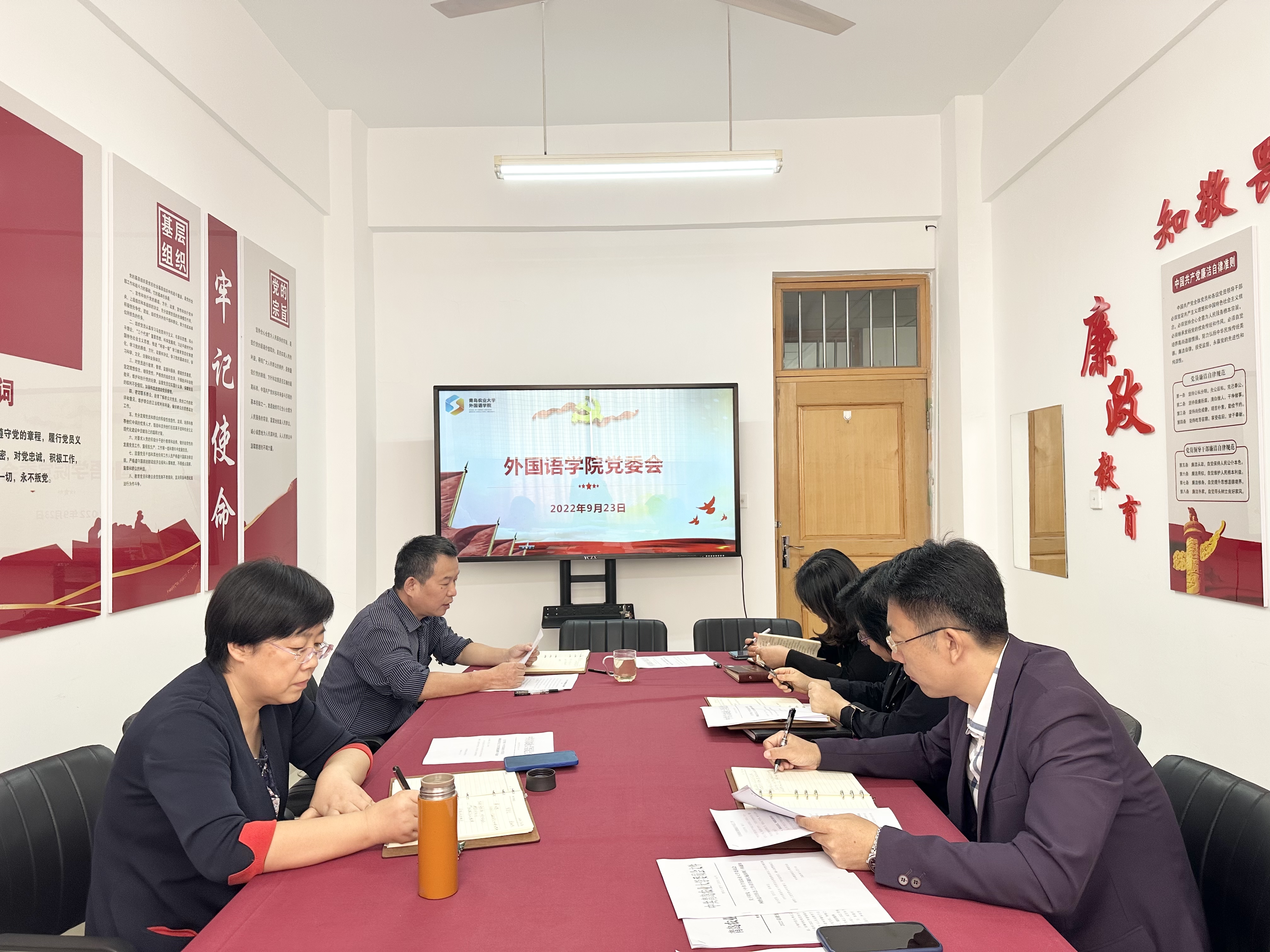 9月23日上午,青岛农业大学外国语学院于文经楼B207召开党委会议,专题研究部署学院秋季学期安全稳定工作。会议由外国语学院党委书记王效仿主持,学院全体领导班子成员参加。