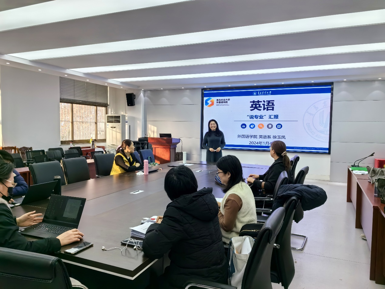 2024年1月4日,青岛农业大学外国语学院英语系在文经楼会议室C220开展“说专业”活动,英语系全体教师参加了本次活动。