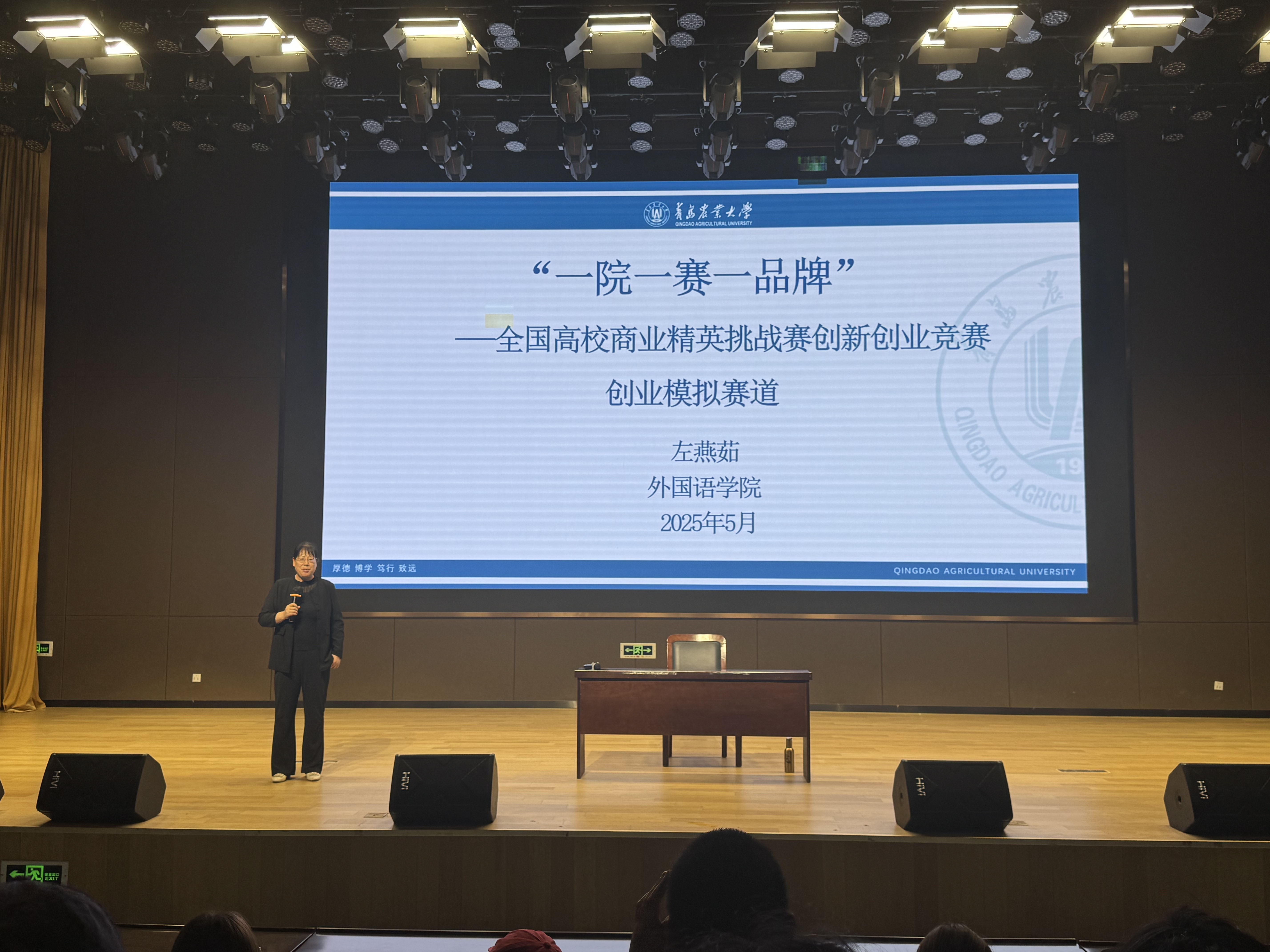 5月23日,外国语学院在平度校区大学生活动中心报告厅举办“一院一赛”——全国高校商业精英挑战赛创新创业竞赛创业模拟赛道宣讲活动,会议由英语系副主任兼校企合作方向负责人左燕茹主讲,辅导员邹晓婷主持,外国语学院2024级全体同学参加。