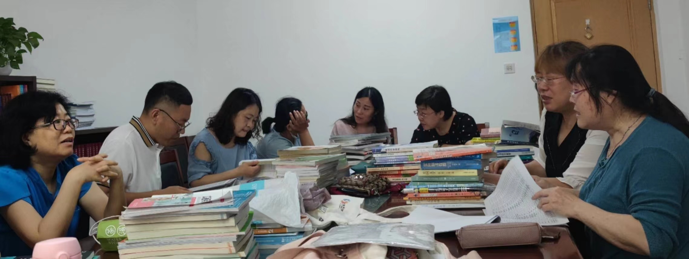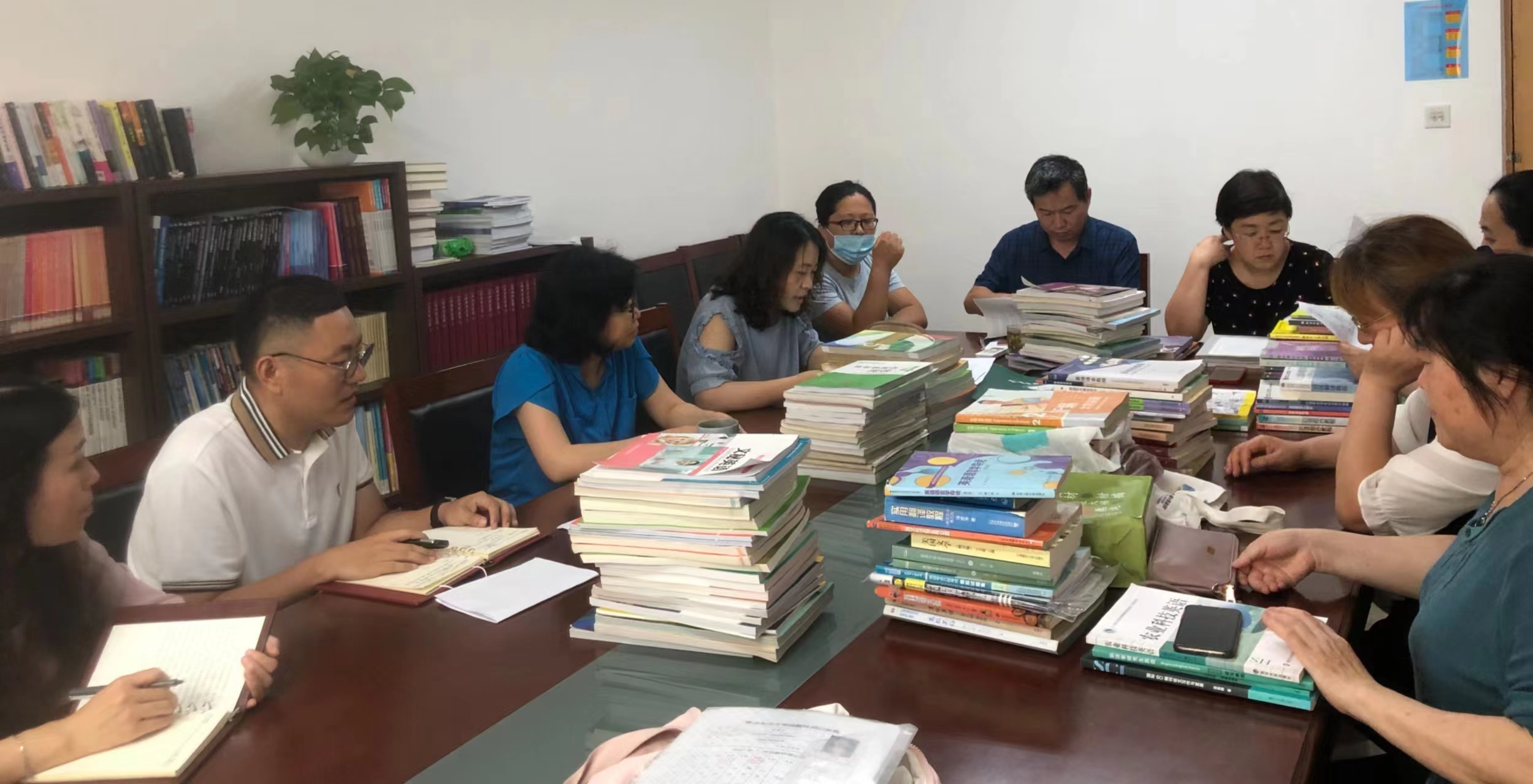 7月8日上午10:00,在文经楼B207,外国语学院教材工作小组对本院2021-2022学年开设课程使用教材、拟于2022-2023学年第一学期使用的各类教材、教辅材料以及我院教师作为主编(或副主编)编写的,2020年以来仍在发行、使用的教材,严格对照《教材全面排查参考要求》开展全面核查。