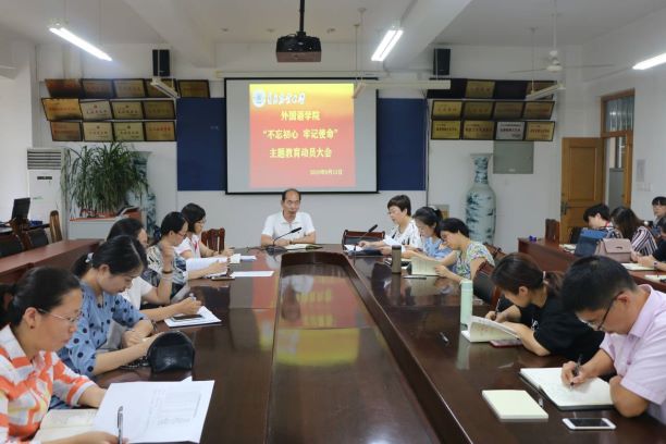 9月12日,青岛农业大学外国语学院于学院会议室举行“不忘初心、牢记使命”主题教育动员大会。学院党政领导出席,全院师生党员参加。党委书记王仁高主持会议并作动员讲话。