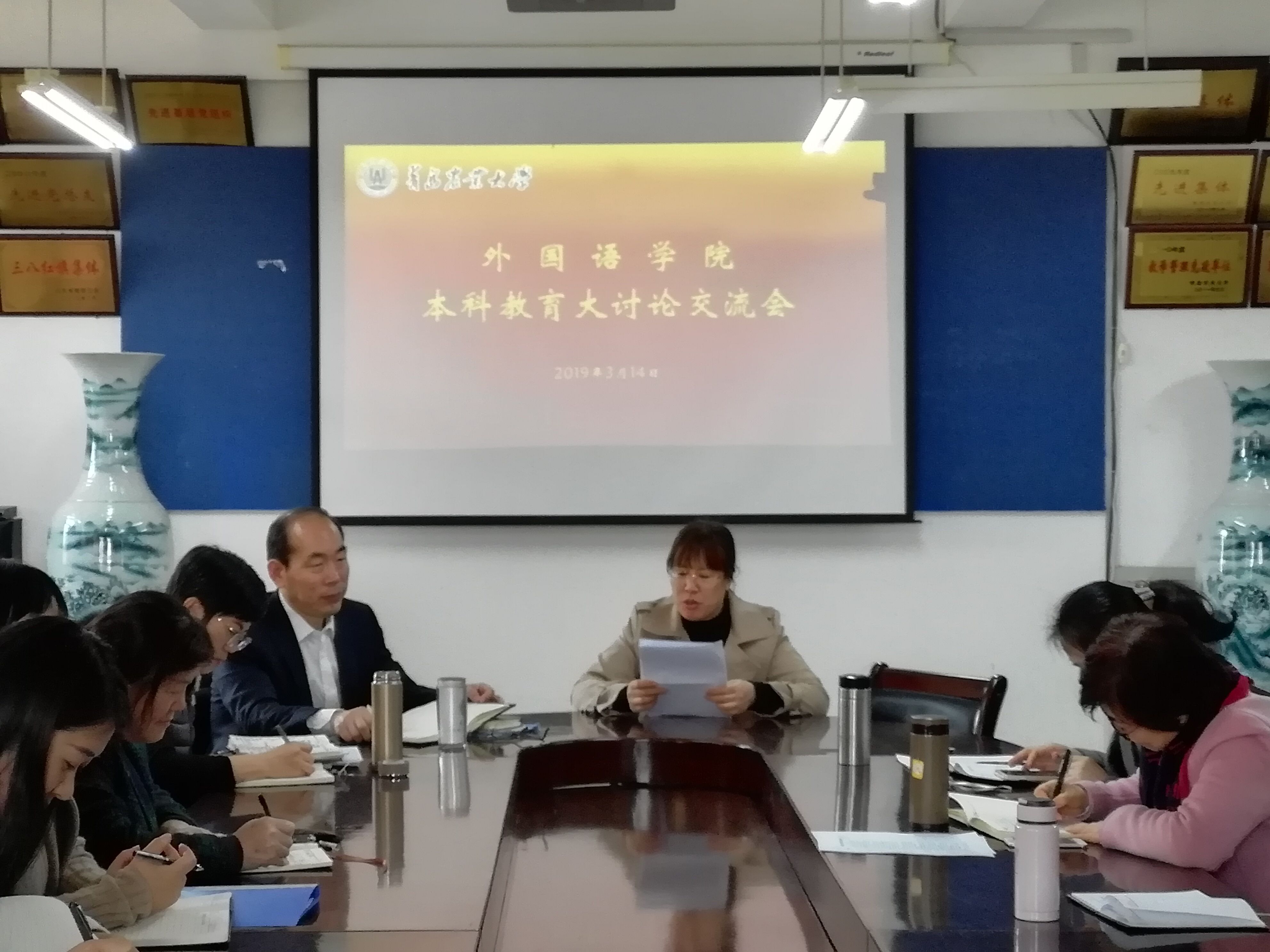 3月14日,青岛农业大学外国语学院在文经楼c220举行本科教育大讨论交流会。学院党政领导出席大会,会议由党委书记王仁高主持。