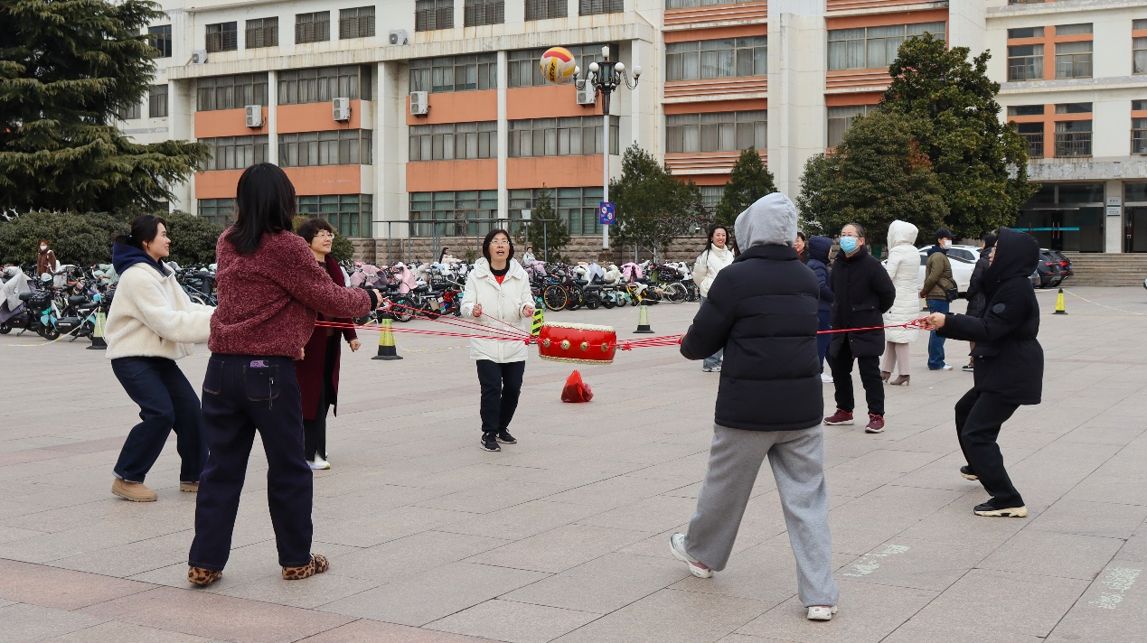 3月7日,外国语学院女教职工积极参与由校工会在虹子广场举办的妇女节趣味健身比赛。