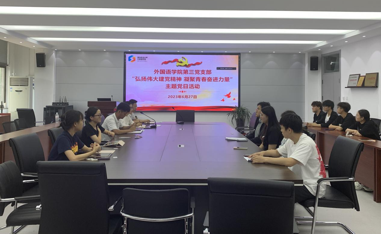 为庆祝中国共产党成立102周年,进一步增强支部成员使命感、责任感和担当精神,6月25日至28日,青岛农业大学外国语学院第三党支部组织开展“弘扬伟大建党精神凝聚青春奋进力量”主题党日活动。通过集中理论学习、重温入党誓词、志愿服务校区搬迁等方式,教育引导广大党员和入党积极分子做到学思贯通、知行合一,充分发挥先锋模范作用。