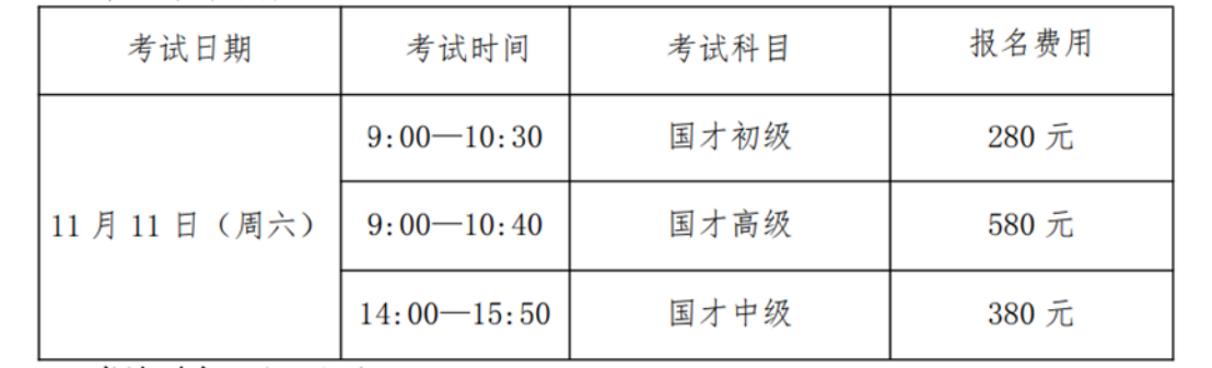 2023年下半年国才考试将于11月11日举行。开考科目包括国才初级、国才中级、国才高级。现将本次考试具体安排通知如下。