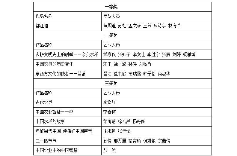 近日,青岛农业大学2023年大学生英语创新大赛“理解当代中国,传播好中国声音”微视频校赛圆满结束,本次校赛主题是“感悟农耕智慧 传承农业文明”,大赛共收到来自全校29个专业65名学生的34项作品。经过专家对作品主题、作品思想、英语表达、视频制作等方面的客观公正评审,共评选出10项获奖作品,一等奖1项,二等奖3项,三等奖6项。现将获奖作品公布如下: