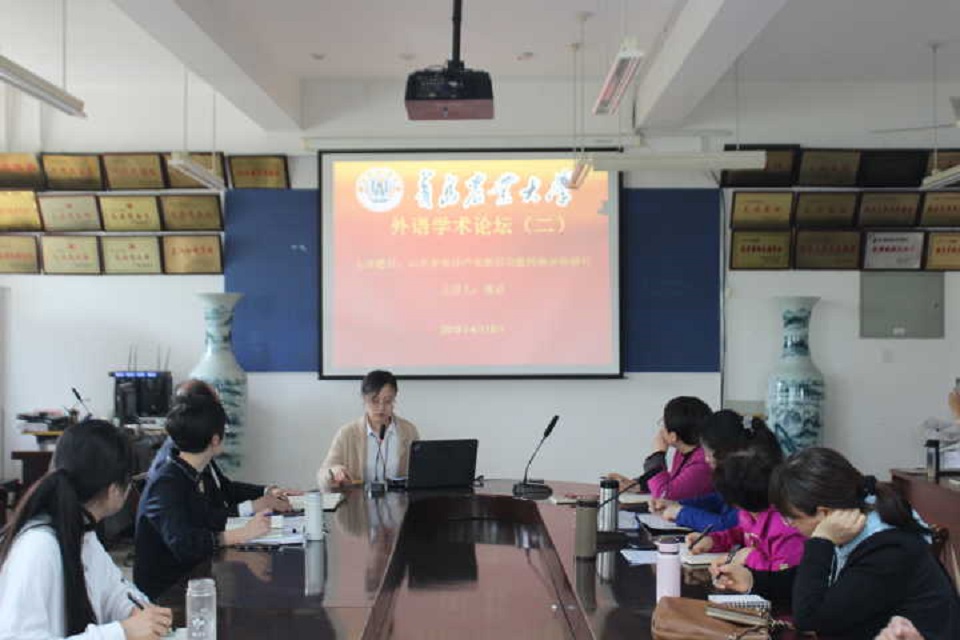 4月18日,青岛农业大学外国语学院于文经楼会议室开展外语学术论坛第二讲。此次学术论坛由董晶博士主讲,主讲题目为《山东省海洋产业新旧动能转换评价研究》,全体学院领导出席,全体教职工与会,副院长高秀雪主持论坛。