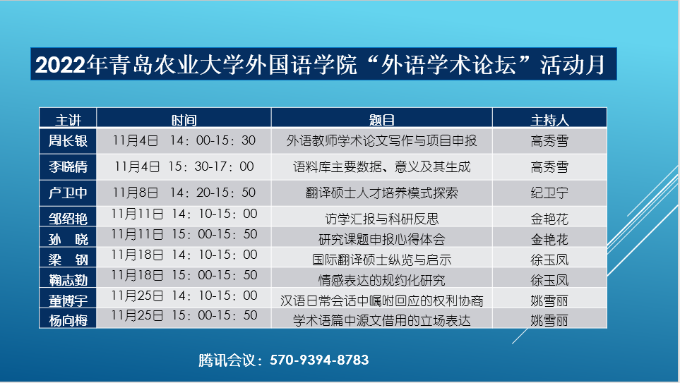 2022年青岛农业大学外国语学院“外语学术论坛”活动月