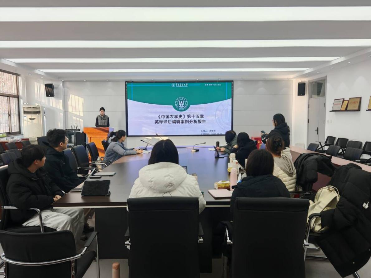 会上,2024级研究生张一岳、吴芊、王欢欢、颜佳琪、曲桉颐、李伟铮、高坤、陈迪等8名同学依次介绍了各自的研究课题,汇报了他们在研究和实践中取得的成果。报告内容涵盖了中国古代农业术语翻译、农业文本翻译的难点及对策、园林文化文本英译中意象的翻译难点等多个主题。在点评环节,导师们对同学们的研究成果和汇报给予了充分肯定,同时也指出了他们研究中的不足与改进之处,并提出了切实可行的指导意见。