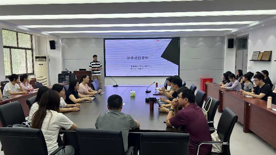 2025年6月20日下午,外国语学院在文经楼C220会议室举办了题为“翻译项目管理”的专题讲座。本次讲座邀请到中译语通科技(青岛)有限公司资深项目经理韩通勋先生担任主讲,学院副院长高秀雪主持,外国语学院院长纪卫宁及部分师生代表参与,现场学术氛围浓厚。