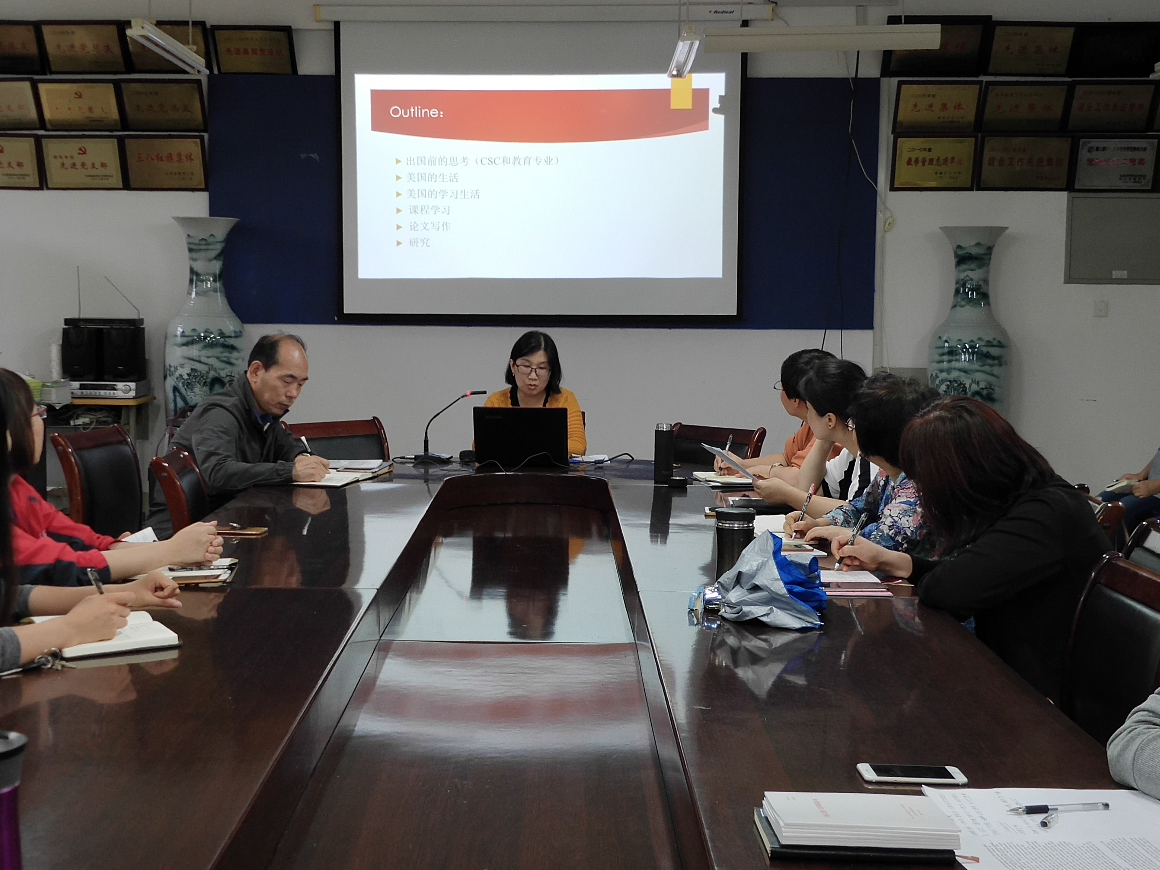 9月20日,青岛农业大学外国语学院于文经楼会议室举办首届外语博士论坛。论坛第一讲——“我的美国求学之路:探索与未知”由2018年7月刚从美国奥本大学学成归来的高艳艳博士主讲。学院领导及全体教职工与会,副院长纪卫宁主持论坛。
