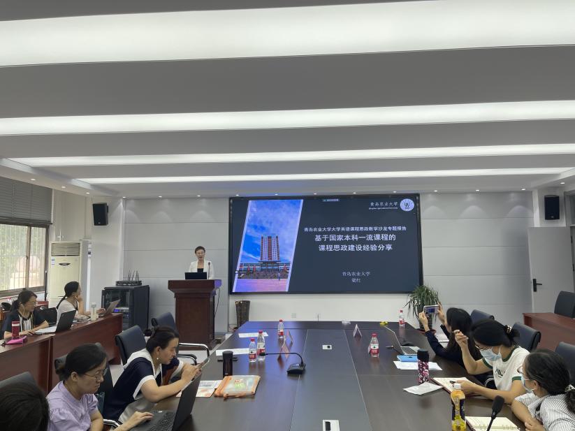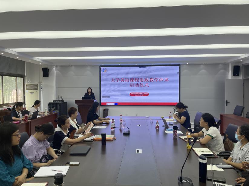 为进一步深化课程思政教学改革,更好地推进课程思政建设,发挥课堂教学立德树人的主渠道作用,9月6日,青岛农业大学外国语学院大学英语第二教学部于文经楼C220资料室举办大学英语课程思政教学沙龙启动仪式。活动特邀青岛农业大学教务处副处长刘园园、国家级一流本科课程负责人梁红参加。本次仪式由外国语学院副院长李春梅主持,通过线上与线下相结合的方式进行,大学英语第二教学部全体教师参加线下会议,并与广西农业职业技术大学等高校的教师进行了线上研讨。