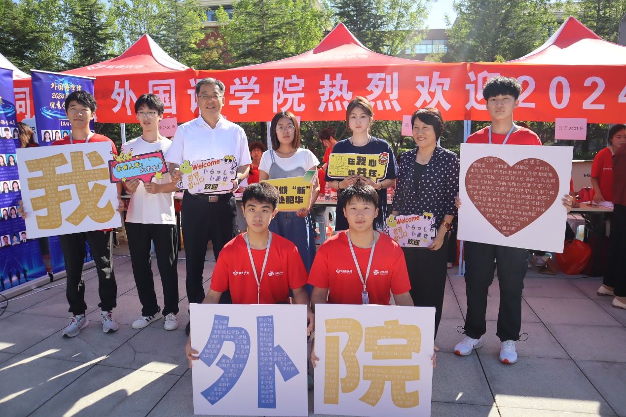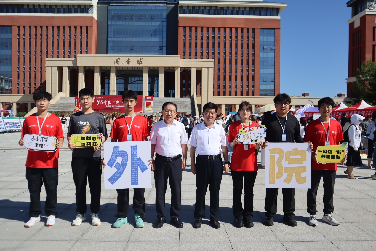 9月6日,青岛农业大学外国语学院喜迎2024级新同学。校党委书记潘军,校长赵金山,校党委副书记刘春霞、田义轲,副校长孟晓军、张玉梅莅临学院迎新现场看望新生、指导工作,并与学院新生、新生家长、迎新志愿者代表合影留念。