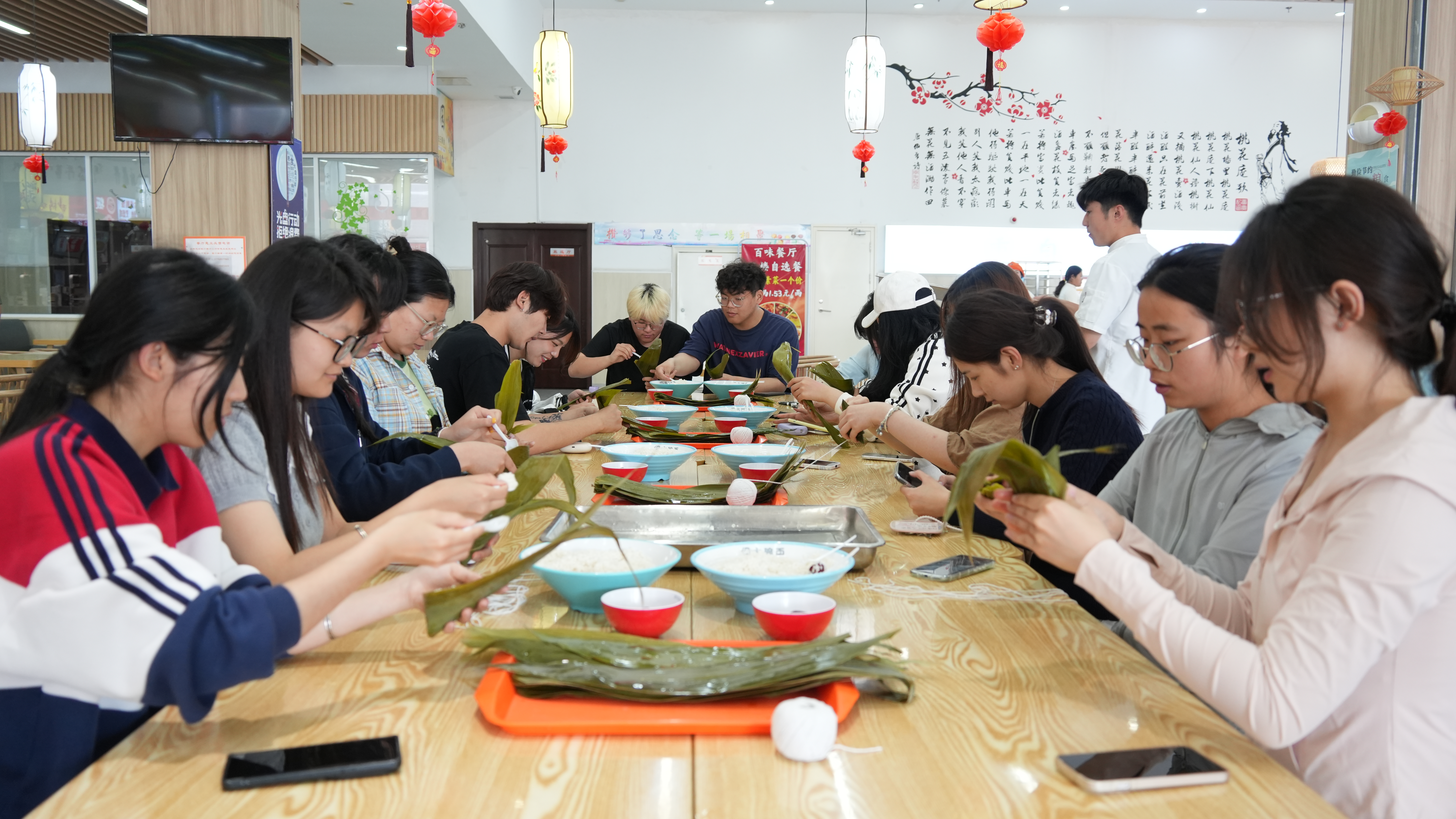 为深入贯彻劳动教育理念,将劳动教育与传统文化、专业学习有机结合,提升学生的劳动实践能力与综合素养,5月24日外国语学院在平度校区百味餐厅举办了“粽香端午,语韵传承”劳动教育活动。