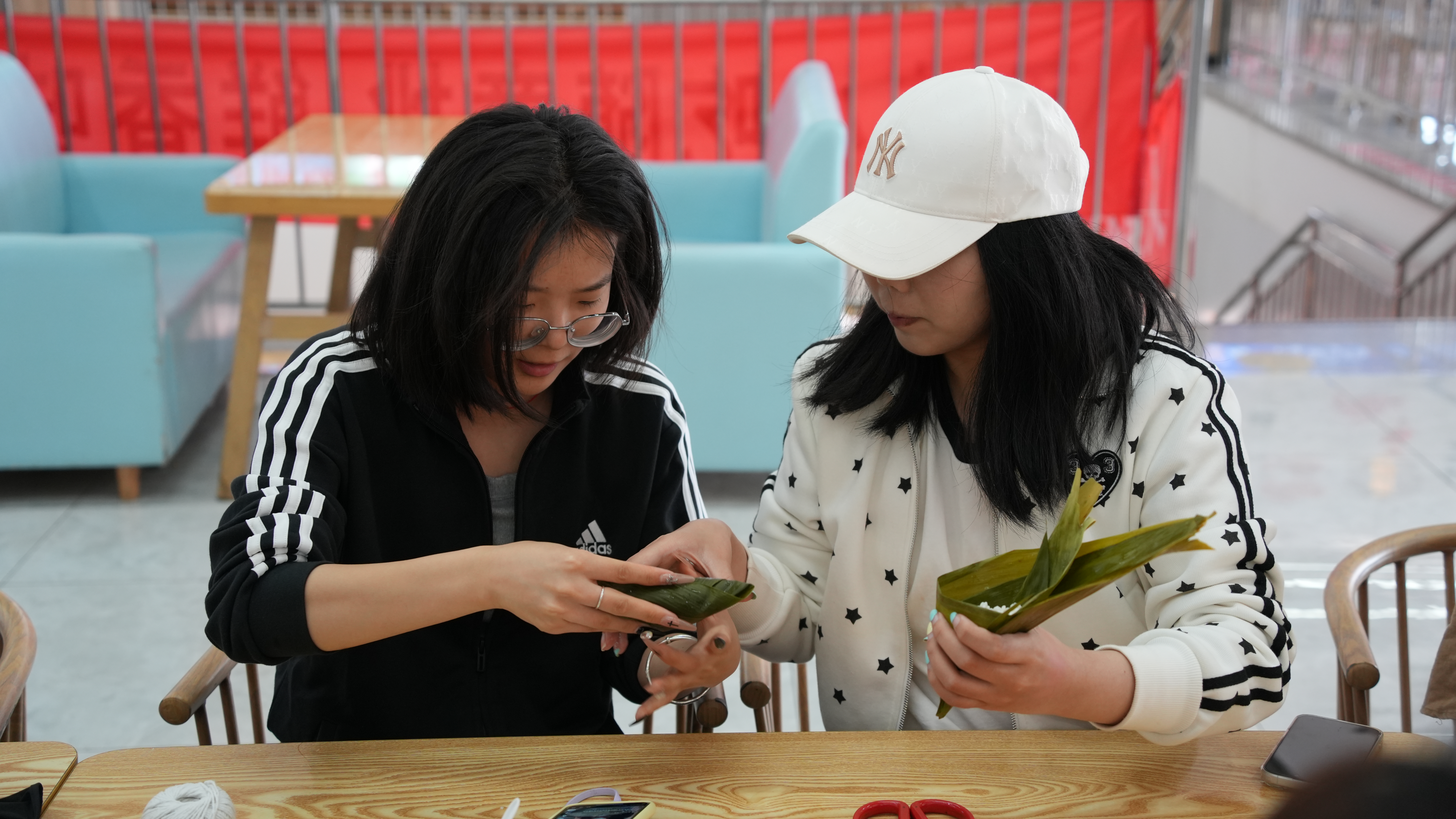活动现场,专业厨师耐心细致地为学生讲解包粽子的技巧,从食材的精心准备,到粽叶的仔细清洗,再到包制与捆绑,每一个步骤都讲解得详尽入微、一丝不苟。学生们以班级为单位,分成若干小组,协作完成包粽子任务。