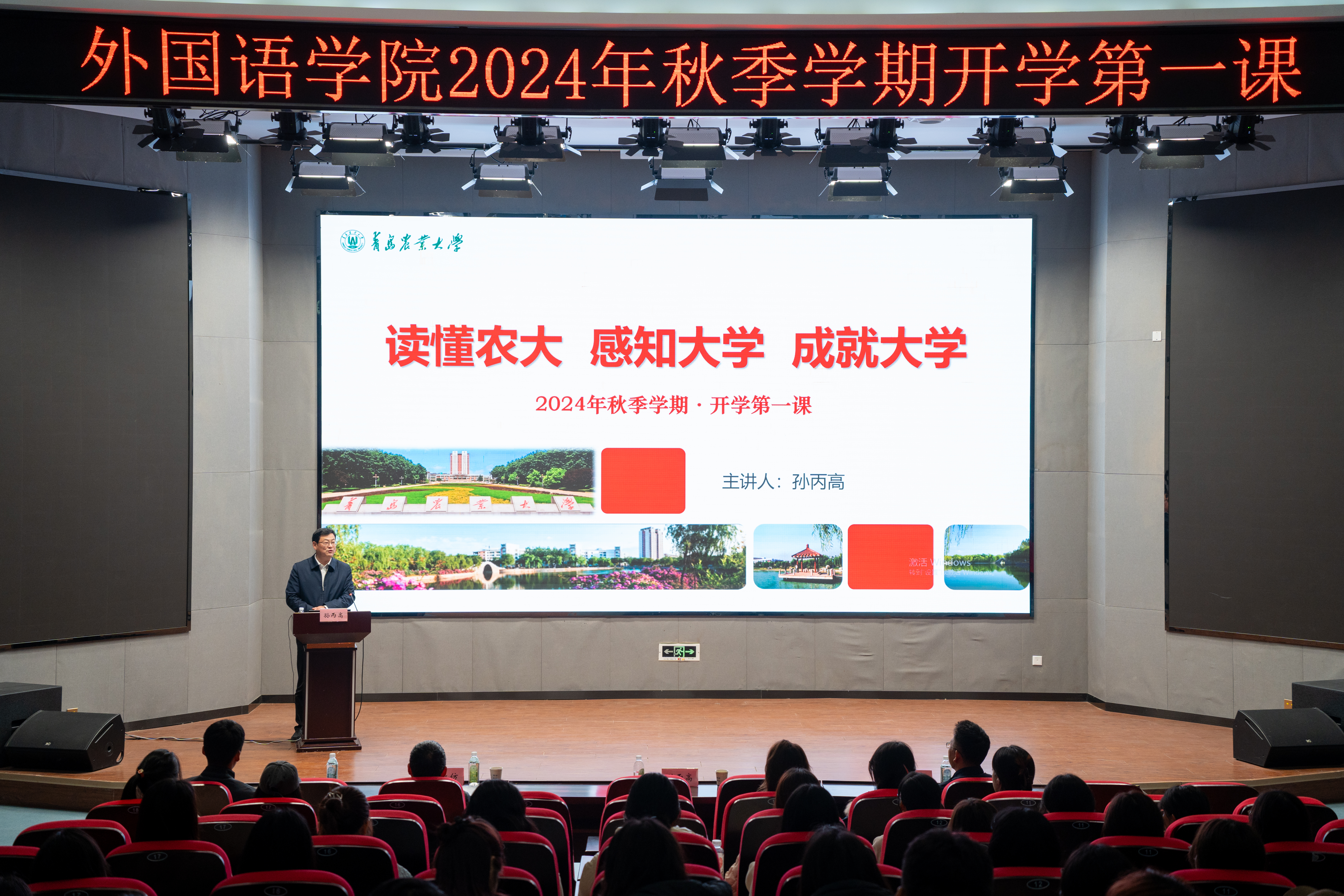 11月12日,青岛农业大学校党委委员、组织部部长、党校副校长孙丙高在平度校区博学楼报告厅为外国语学院2024级新生讲授题为“读懂农大 感知大学 成就大学”的开学第一课。活动由外国语学院党委书记王效仿主持,外国语学院2024级全体学生参加。