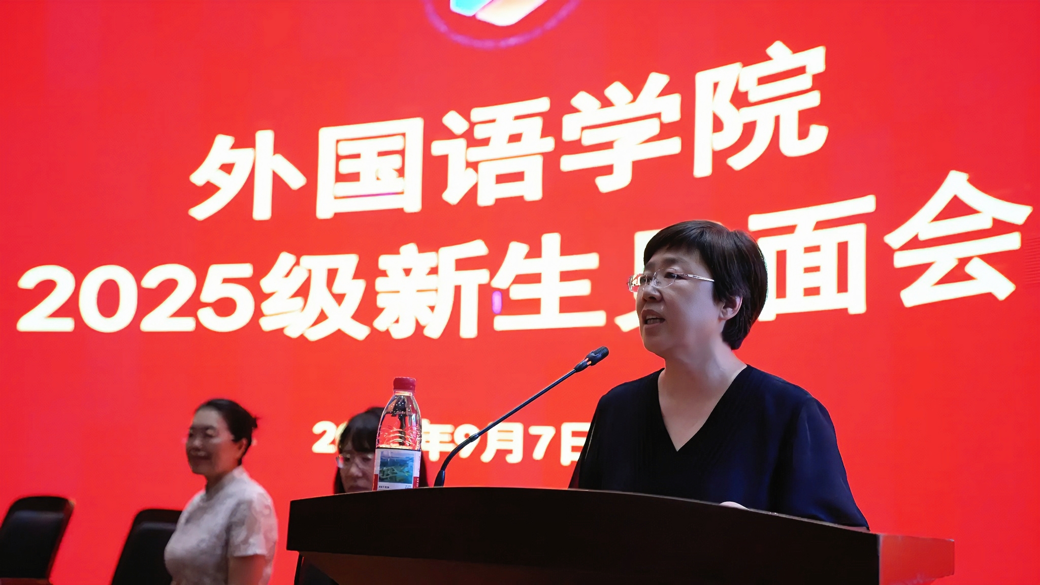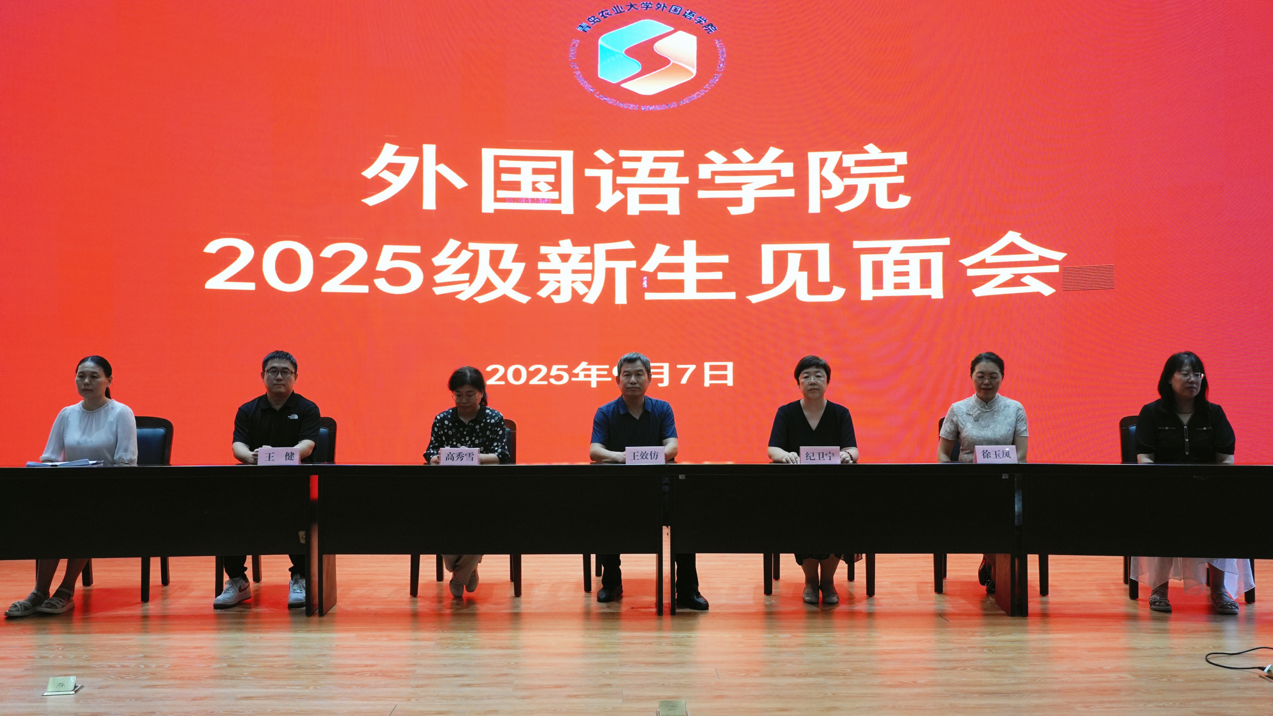 9月7日,外国语学院在平度校区明德楼报告厅召开2025级新生见面会,外国语学院党委书记王效仿、院长纪卫宁、副院长高秀雪、英语系系主任徐玉凤、日语系系主任王健、英语系副主任左燕茹、MTI中心主任姚雪丽,全体辅导员和2025级新生参加会议。会议由外国语学院团委书记线郁主持。