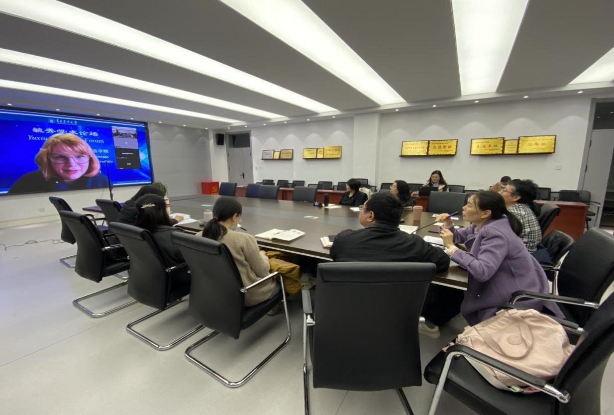 11月21日,青岛农业大学外国语学院邀请了英国萨塞克斯大学英语语言和语言学系主任M. Lynne Murphy教授在文经楼C220会议室通过线上开展讲座,题目为 Polite Words in English,外国语学院翻译硕士导师,硕士生任课教师、学位论文指导教师以及全体翻译硕士研究生以线上/线下的形式积极参加,会议由外国语学院副院长高秀雪教授主持。