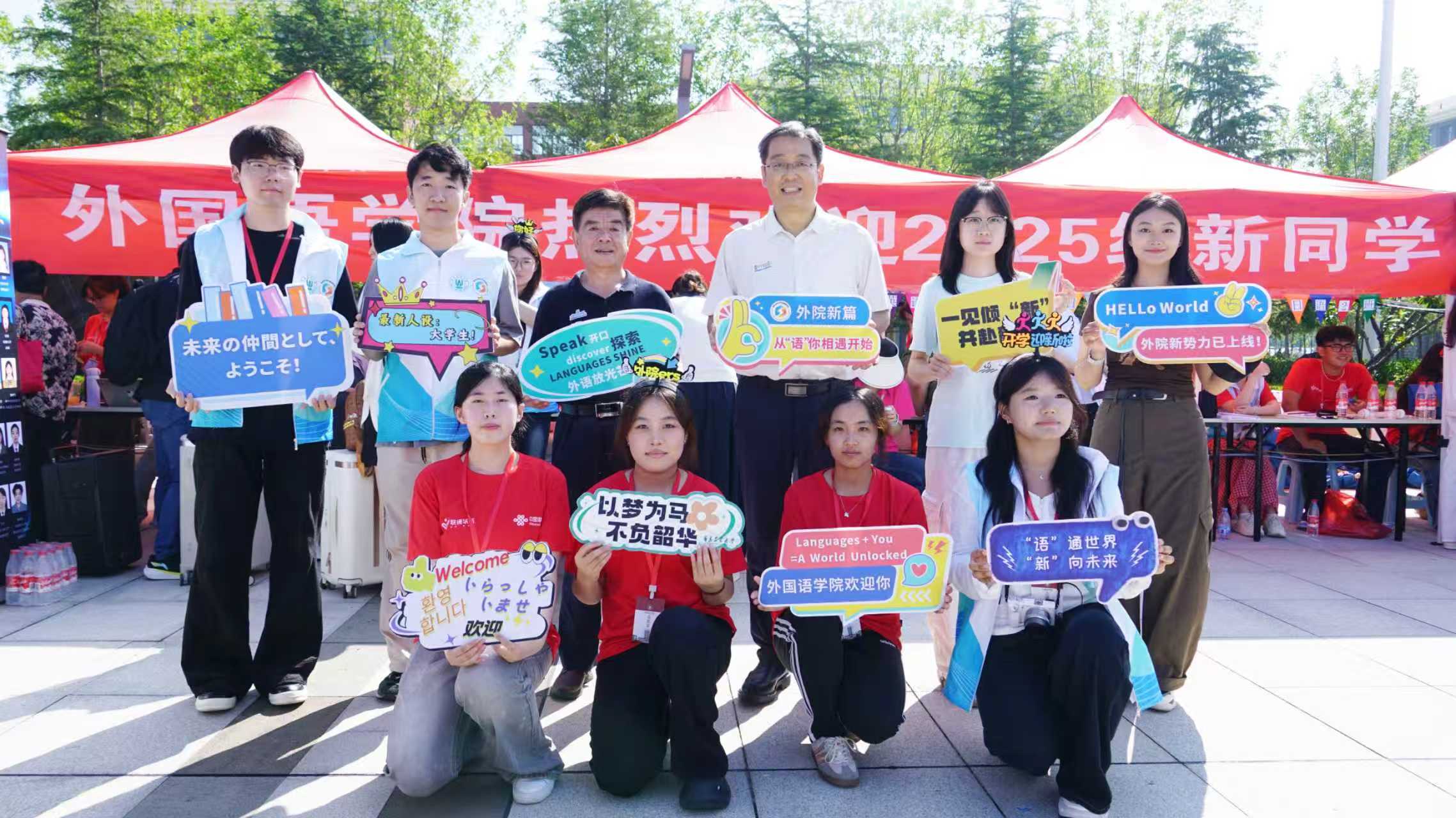 9月5日和9月6日,青岛农业大学外国语学院喜迎2025级新同学。校党委书记潘军,校党委副书记刘春霞、田义轲,校党委委员、纪委书记及省监委驻青岛农业大学监察专员陈相艳,校党委委员、副校长张玉梅,校党委委员、组织部部长孙丙高等校领导莅临学院迎新现场看望新生、指导工作,并与学院新生、新生家长和迎新志愿者代表合影留念。