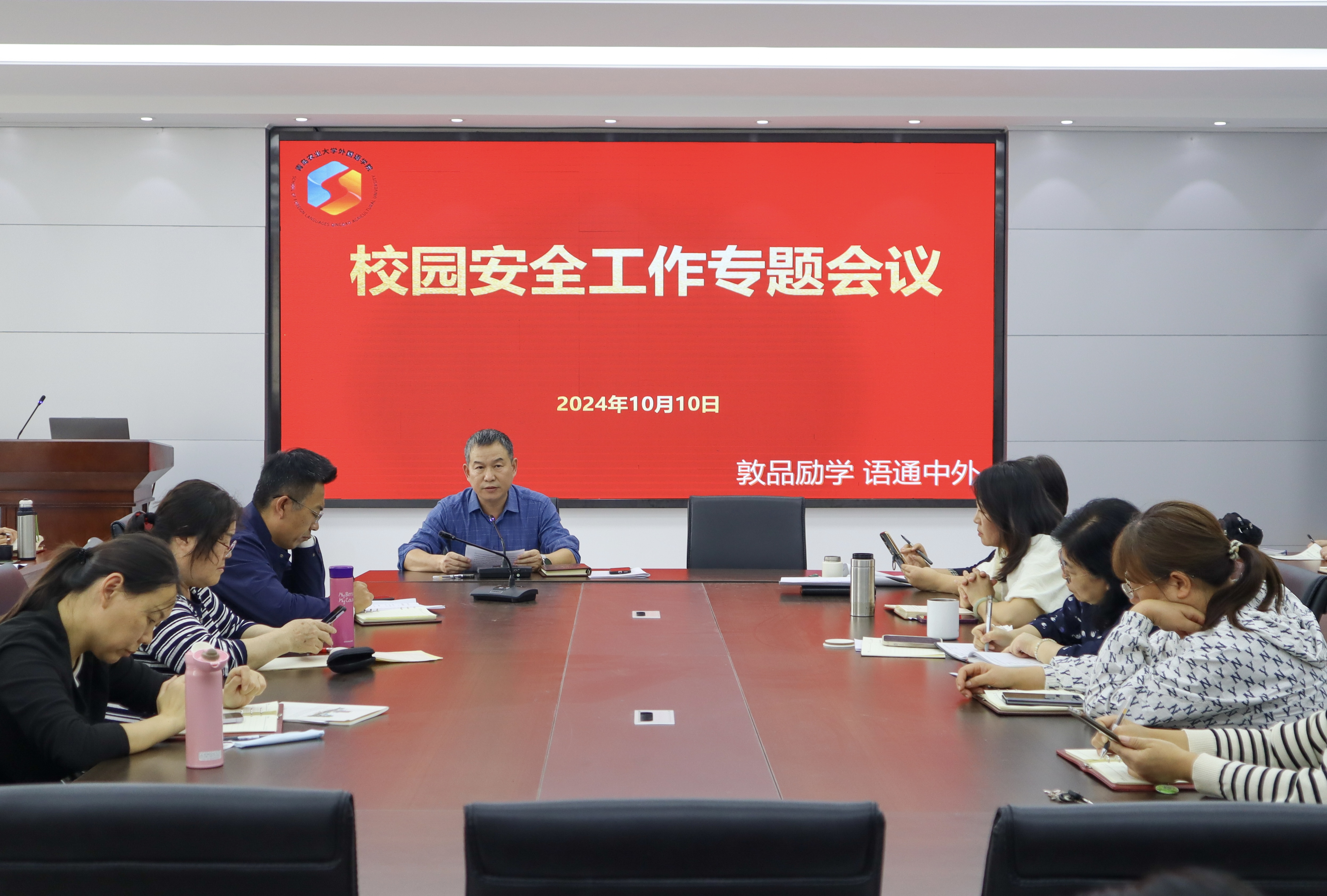 为贯彻落实好学校校园安全工作会议精神,提升全院师生的安全意识和防范能力,确保学院安全稳定及师生生命财产安全,10月10日下午,外国语学院组织召开了学院校园安全工作专题会议。会议由外国语学院党委书记王效仿主持,外国语学院全体教职工参加会议。