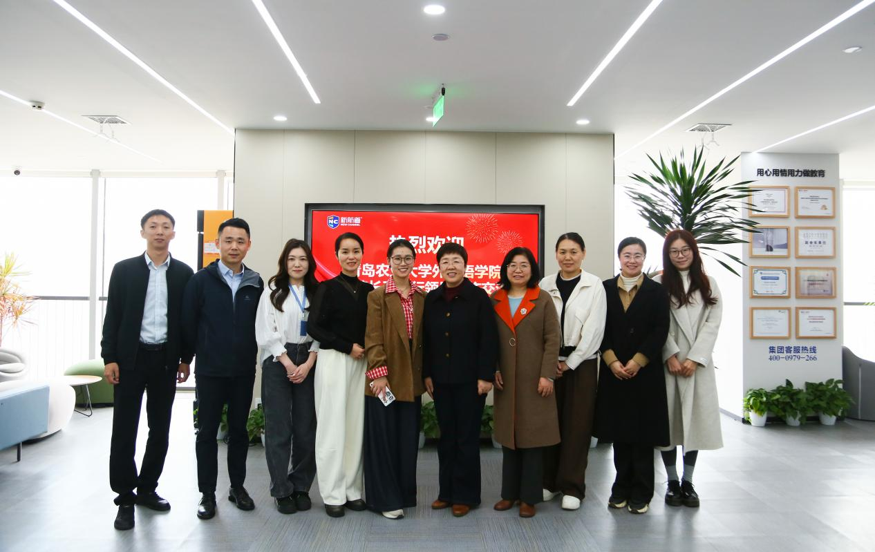2025年11月11日上午,外国语学院院长纪卫宁、副院长高秀雪、学院团委书记线郁、学院MTI中心主任姚雪丽以及研究生代表赴新航道青岛学校开展访企拓岗活动。新航道青岛学校副校长文雅丽、人力总监张丽丽、市场总监黄广起、市场经理龚佳祺全程陪同。