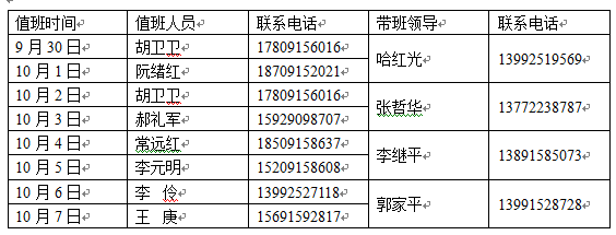 根据《国务院办公厅关于2018年部分节假日安排的通知》,现将我校2018年国庆节放假安排通知如下,请按通知做好各项工作。 一、放假时间 10月1日(星期一)至10月7日(星期日)放假,共7天。9月29日(星期六)、9月30日(星期日)上班,9月29日执行10月4日(第五周星期四)的教学工作安排,9月30日执行10月5日(第五周星期五)的教学工作安排。