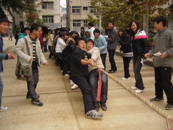 外语系为响应教育部、团中央倡导学生开展冬季阳光体育运动的号召,让同学们在运动中享受阳光,在阳光中享受快乐,在快乐中全面发展,以丰富同学们的课余生活,提高同学们的锻炼热情,1119日下午举办了“第三届冬季阳光体育健康运动活动”。活动经过各班的预赛选拔于1119进行了各项决赛,本届冬季阳光体育健康活动共设有跳棋、跳绳、踢毽子、乒乓球、拔河等 ,经过两天的角逐,2008级英语教育二班、张楠、刘瑶、姚娇娇、姜建党、徐维玉等同学分别取得了拔河、跳棋等项目的第一名,其他学生分获二、三名。学工部部长郑树青、系党总支书记李岩、系学工办主任任森龙、辅导员周静为获奖班级、个人颁发了奖状和证书。郑树青部长勉励大家积极参加校园文体活动,在活动中学会团结,在活动中锻炼能力,在活动中提高素质。