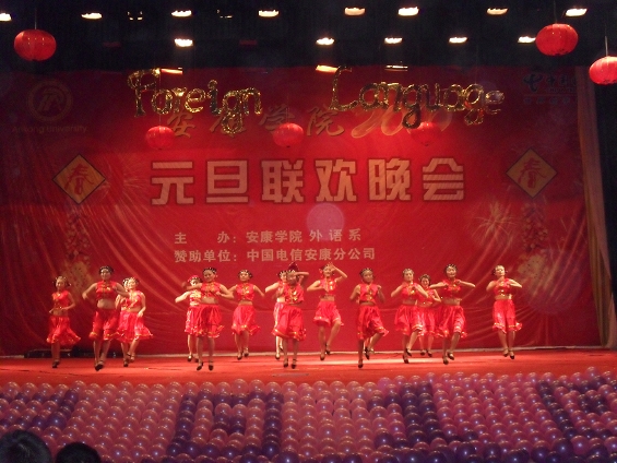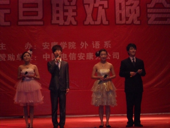 12月23日晚上7:30分,晚会在西校区大礼堂拉开帷幕。会场上外语系的同学们用热烈的掌声欢迎着每一位到场的嘉宾,出席本次晚会的领导和嘉宾有安康学院原副院长刘忠琴、学院党委副书记胡鸿晓 党委组织部部长胡波等有关职能部门、系部的领导和学工办、团总支的老师们,我院的几位外教也应邀出席了晚会。