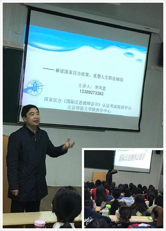 3月9日,国家汉办陕西分中心教师李凤堂等一行应邀来我院,以“解读国家汉办政策,重塑人生职业规划”为主题为我院2014、2015级学生和部分教师做了2场报告。