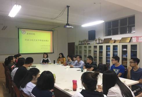 首先,冯琳对本届文化艺术节的主题、目的、筹备进展、运行模式、存在的不足与困境等方面,以及本届文化艺术节筹备情况等进行了说明;随后,各社团社长分别就社团活动的组织策划、进展情况以及实施细节进行了详细汇报;最后,副院长李继平针对筹备工作的开展情况,在活动教育意义、品牌打造、活动组织、活动宣传、人员安全等方面提出了很多建设性意见;张哲华副院长强调本届外语文化艺术节要做到高度重视、精心组织、密切合作,要充分认识到校园文化艺术节在丰富师生校园文化生活、提高师生外语文化素养,加强学生骨干队伍建设,培养大学生综合能力素质等方面的重要作用;同时也要充分考虑我校两校区办学特点,保证不同文化群体对校园文化活动的参与面。