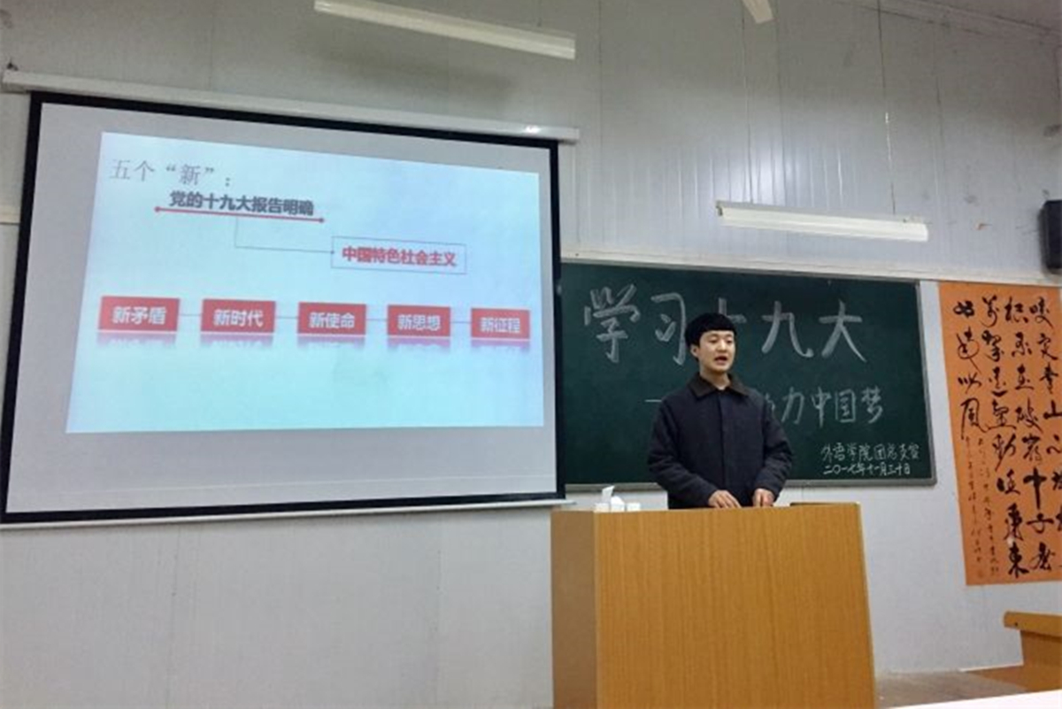 为了学习和贯彻党的重大政策方针,贯彻好、学习好、理解好十九大的精神。按照外语学院团总支的安排,11月30日晚,2015级、2016级和2017级学生分别在6405教室、6407教室、6408教室,开展“学习十九大,青春助力中国梦”主题活动。