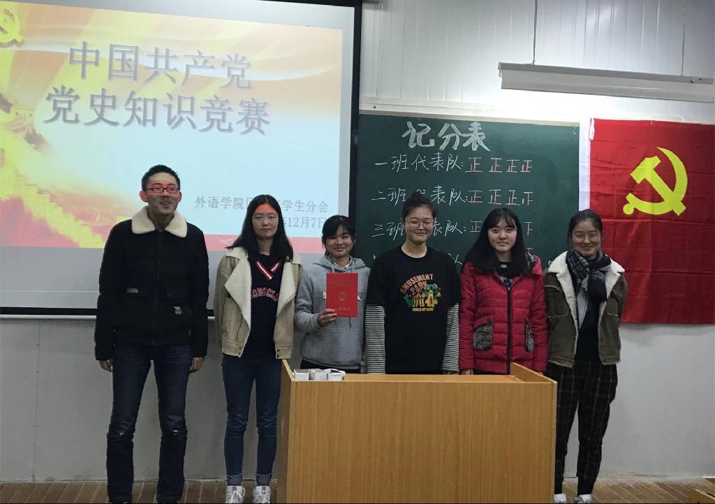 为进一步学习贯彻落实党的十九大精神,引导学生党员、发展对象、入党积极分子自觉加强理论知识学习,外语学院学生党支部精心组织了一次“学党史、知党情、跟党走”的党史知识竞赛。我院学生党员、发展对象、入党积极分子80余人参加本次活动。竞赛由学生党支部组织委员王乔同学主持。