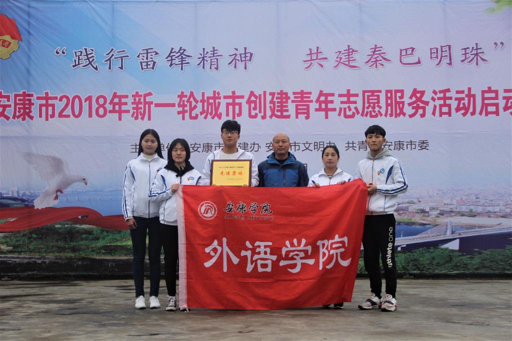 2017年,在外语学院党总支的领导下,在学校团委的大力支持下,外语学院团总支积极组织广大学生党员、团员青年,成立青年志愿者服务队,每月对香溪洞景区开展义务清扫、卫生保洁、创建宣传、旅游服务等志愿服务活动,受到安康广大市民的称赞,社会反响良好,为安康的市容美化、城市宣传和国家森林城市创建做出了积极贡献。
