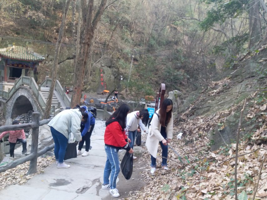 3月14日下午 ,外语学院学生党支部组织无课学生党员、部分发展对象和入党积极分子开展对香溪洞景区进行义务清扫、卫生保洁、创建宣传、旅游服务等志愿服务活动,经过一个半小时紧张劳动,香溪洞景区又变得干净整洁。