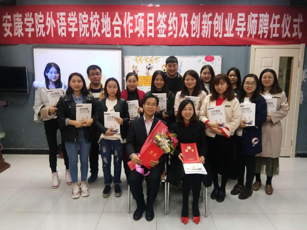 为进一步推进产教深度融合,积极探索校地校企共建专业,深化教育教学改革,培养合格应用型外语人才,2018年3月23日上午,安康学院外语学院校地合作项目签约及创新创业导师聘任仪式在西安蒲公英(石泉)培训中心举行。活动仪式由西安蒲公英(石泉)培训中心负责人刘健强主持,外语学院副院长张哲华、蒲公英学校校长许见及全体教师共同参加。