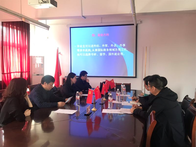 在会议交流阶段,商务英语系系主任陈琨琨副教授、副主任顾童,分别就该院商务英语专业建设发展过程及建设成果进行了讲解与分享。我院副院长张哲华向兄弟学院对我院的接待与支持表示感谢,就考察主要意图、交流的主要问题做了说明,同时简要介绍了我校及外语学院基本情况。双方就商务英语专业建设中存在的共性问题进行了深入交流。