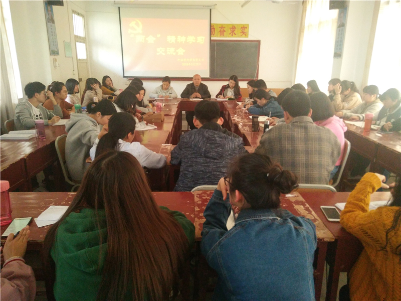 3月23日下午,外语学院组织学生党员、青年团员在6303教室召开学习“两会”精神交流会。认真学习、深刻领会习近平总书记发表的重要讲话精神,进一步坚定理想信念。