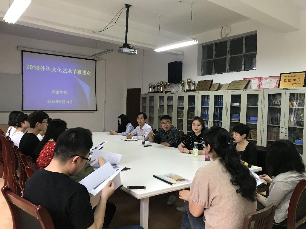 5月14日下午,我院召开了外语文化艺术节工作推进会议。副院长张哲华、李继平、各专业社团指导老师及社团学生干部参加了会议。会议由外语文化艺术节总负责人冯琳主持。
