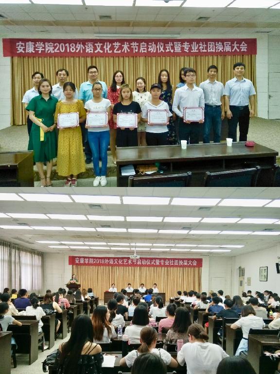 5月16日下午,安康学院2018外语文化艺术节暨专业社团换届大会在江南校区图书馆6楼报告厅拉开帷幕。学校团委书记李光梓、外语学院院长哈红光、书记郭家平、副院长张哲华等出席活动;外语学院专业社团指导老师及15、16级学生出席启动仪式,现场气氛热烈。