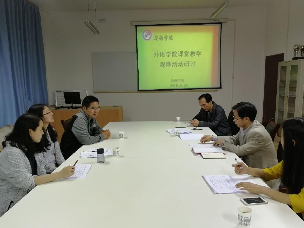 为了营造良好的教研氛围,推进教学模式与方法改革,提升教育教学质量,5月29-30日,我院部分专业课教师对朱国琴讲授的《英语写作》课程进行了观摩与研讨。研讨活动在6109会议室召开,会议由副院长张哲华主持。