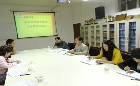近日,外语学院英语系期中教学师生座谈会在江南校区六号教学楼6109室召开,外语学院副院长张哲华、教学督导组长陈平、英语系任课教师以及各年级各班学生代表参加了座谈会。会议由英语系主任赵龙主持。