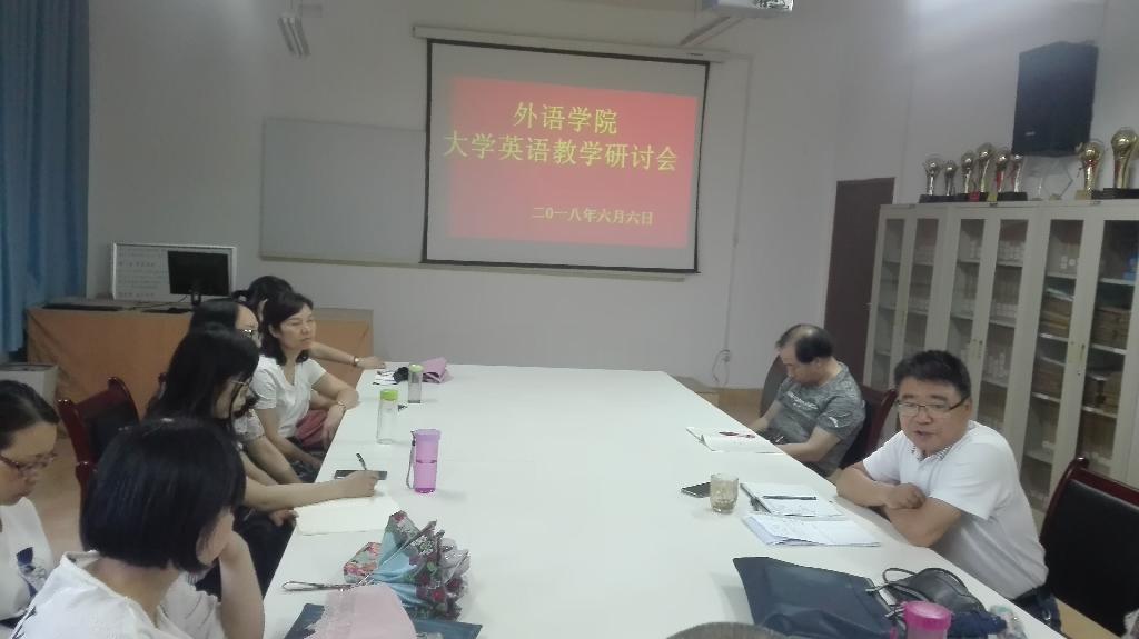 2018年6月6日,大学英语教学工作专题研讨会在6109会议室召开,全体大学英语教师参加会议,重点总结本学期常规教学工作进展、课程改革工作亮点和教研教改工作成绩,并讨论了大学英语应用课程建设中的问题与挑战。