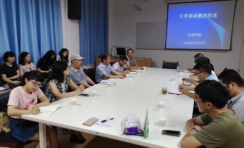 6月22日下午,外语学院在6109会议室成功举办了大学英语教改沙龙活动。本次活动特别邀请了我校首席专家王长乐教授、高教研究室胡景乾教授、教务处副处长李友海、大学数学教研室主任郭芳、小学教育系主任李支其、护理系主任陈佳等教学专家莅临指导。来自不同院系的部分学生代表参加了本次教改沙龙。外语学院领导班子和全体大学英语教师参加了活动。