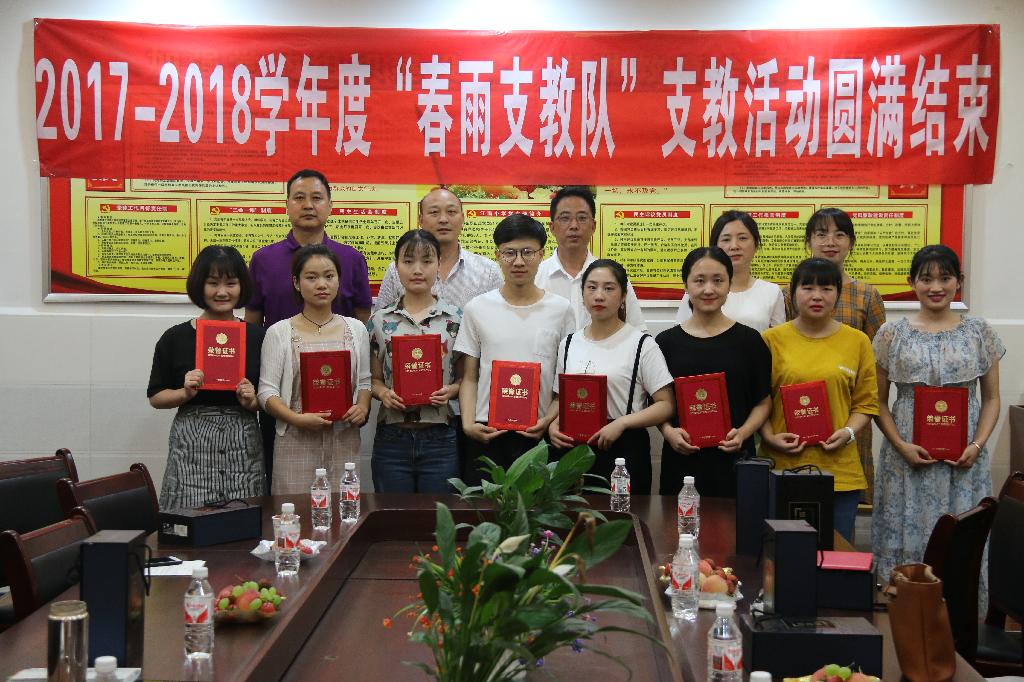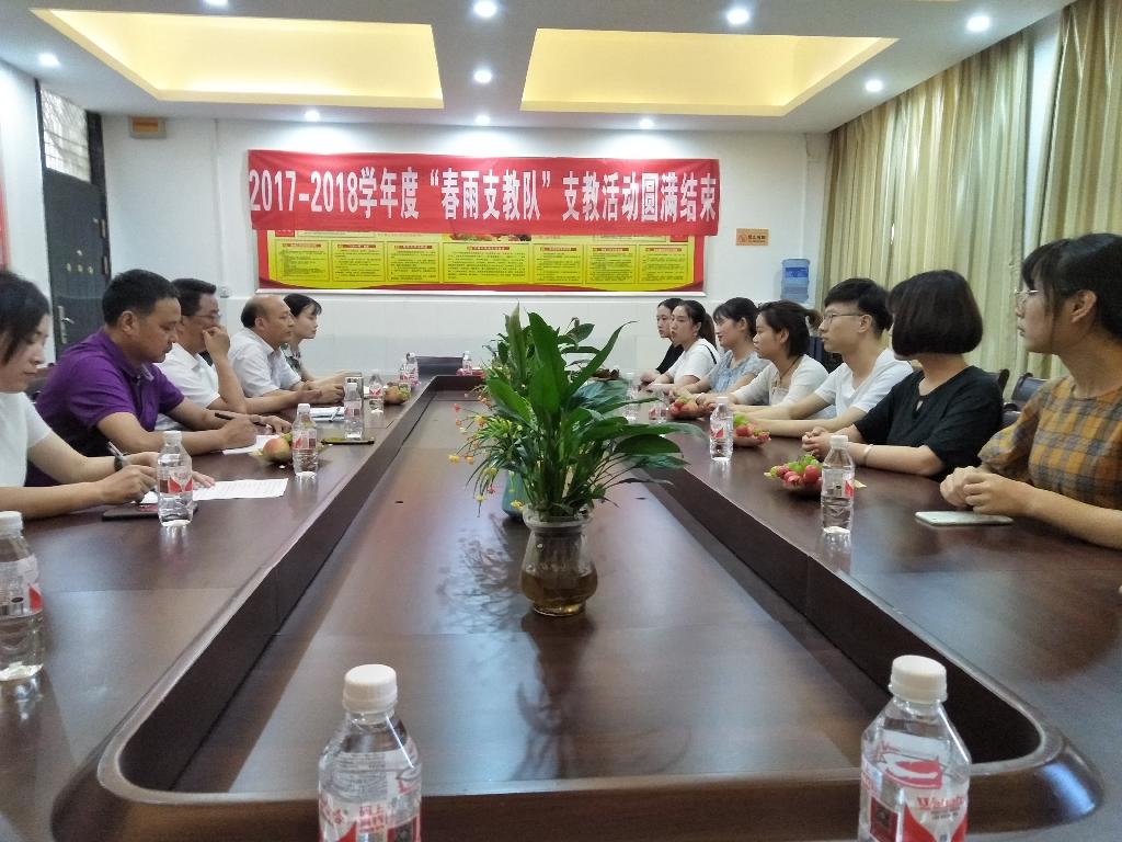 6月22日下午,外语学院学生党支部、团总支2017-2018学年度“春雨支教队”支教活动总结会在江南小学举行。江南小学校长余维贤、党支部书记修治安、副校长张玲玲、外语学院学生党支部书记、团总支书记郝礼军以及“春雨支教服务队”全体成员参加了总结会。会议由江南小学副校长张玲玲主持。